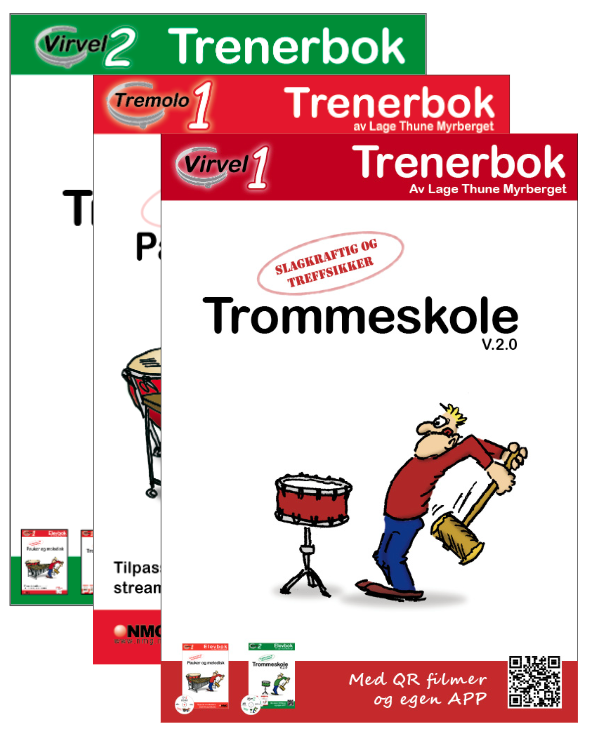 Trenerbøkene til Virvel 1, Virvel 2 og Tremolo 1 gir deg som lærer ferdige opplegg til hver time, med duetter, gehørtrening, forslag til samspill og pedagogiske tips. Dette er ditt verktøy for helhetlig slagverkundervisning.